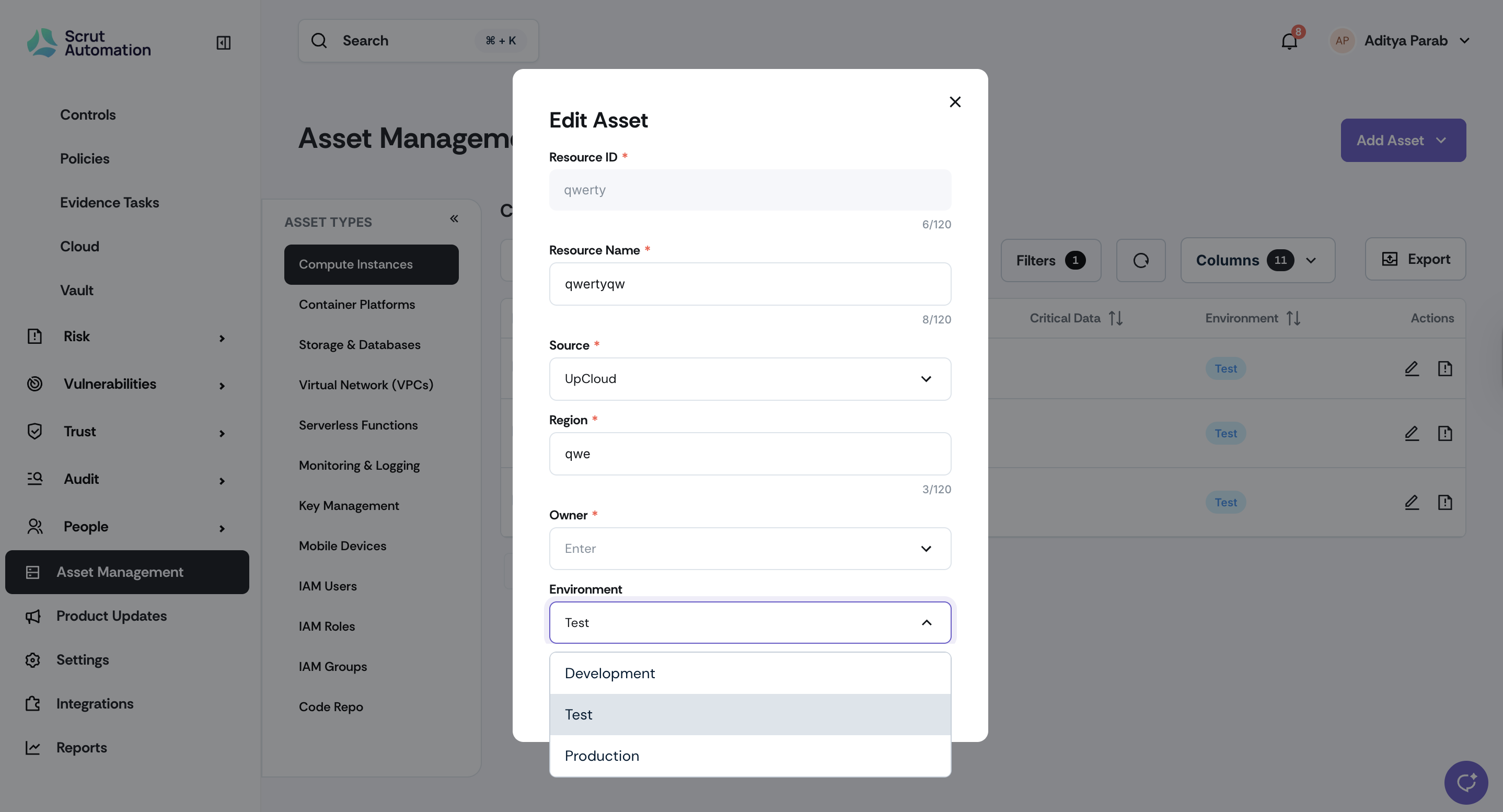 While creating or editing assets, assign environment tags such as Development, Test, or Production.