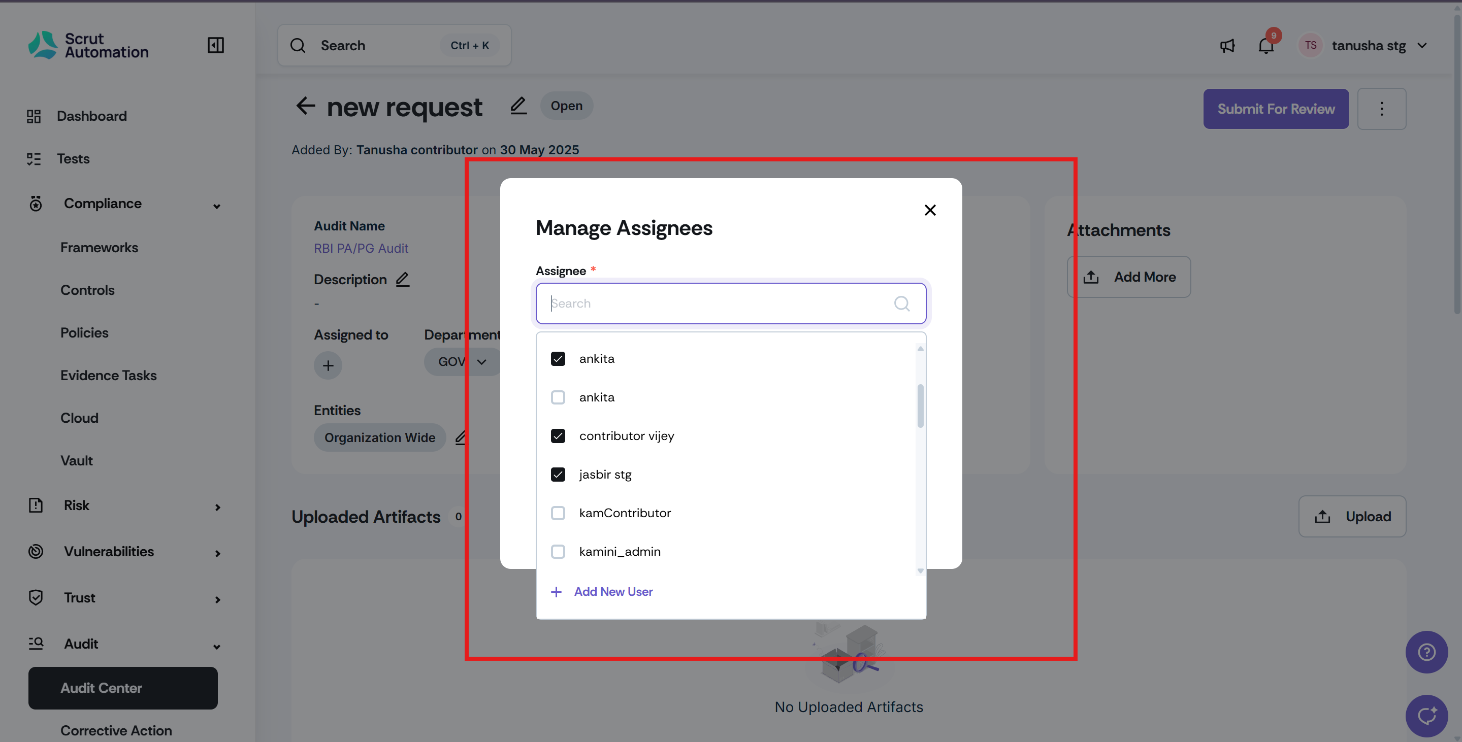 Many audit tasks require collaboration across teams, but single-assignee limitations forced manual coordination outside the platform. Multiple assignees make ownership clearer by defining a primary owner, while enabling shared responsibility for faster resolution.